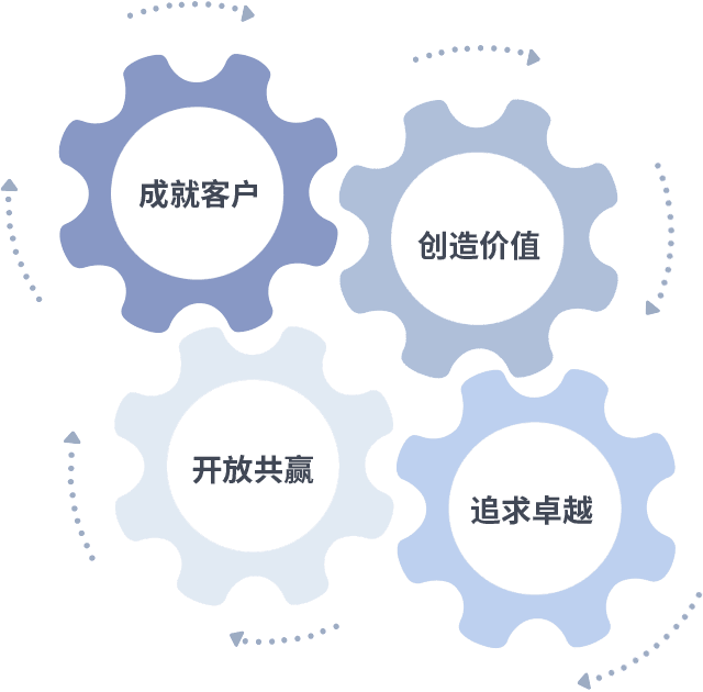 成就客户是一切决策的出发点,创造价值是衡量所有工作的标准,追求卓越是九游会做事做人的态度,开放共赢是九游会的格局也是最终的结果。价值观的齿轮环环相扣,推动着组织里的每个人不断向前。